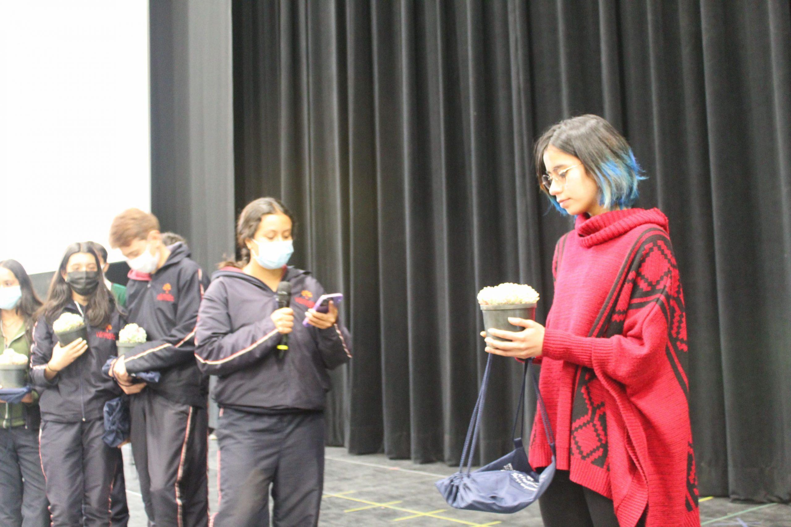 Durante la jornada, los estudiantes también contaron con la presencia y participación de Natalia Pérez, la Directora Administrativa y Financiera del Gimnasio Vermont, quien les compartió su experiencia con el cáncer, las reflexiones que logró tener de este proceso y los invitó a observar con respeto la obra, prestar atención, abrir su corazón y tener en cuenta el mensaje que la fundación tenía para entregarles en este día.